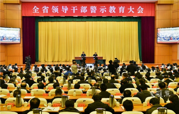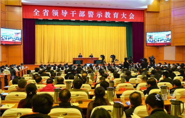 12月27日,省委召开全省领导干部警示教育大会,深入学习贯彻党的十九大关于全面从严治党新要求,以案明纪、警钟长鸣,进一步表明坚定不移正风肃纪和推进反腐败斗争的鲜明态度,推动全省各级党员干部真正做到自重自省、自警自励,永葆忠诚干净担当的政治本色。省委书记娄勤俭在会上讲话,省委副书记、省长吴政隆主持大会。